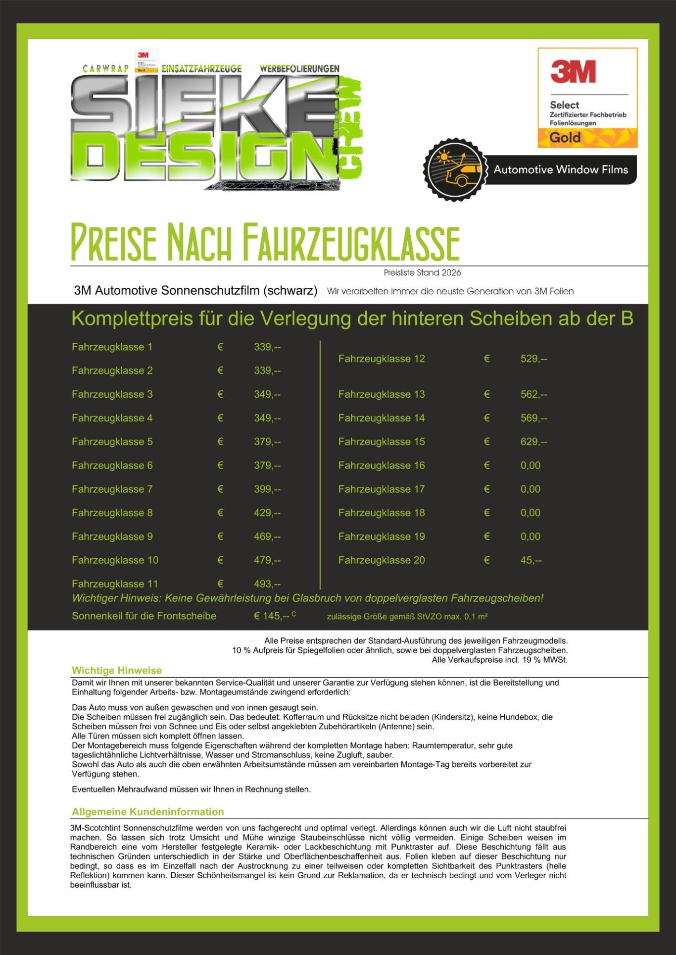 PREISE NACH FAHRZEUGKLASSEN/MARKEN